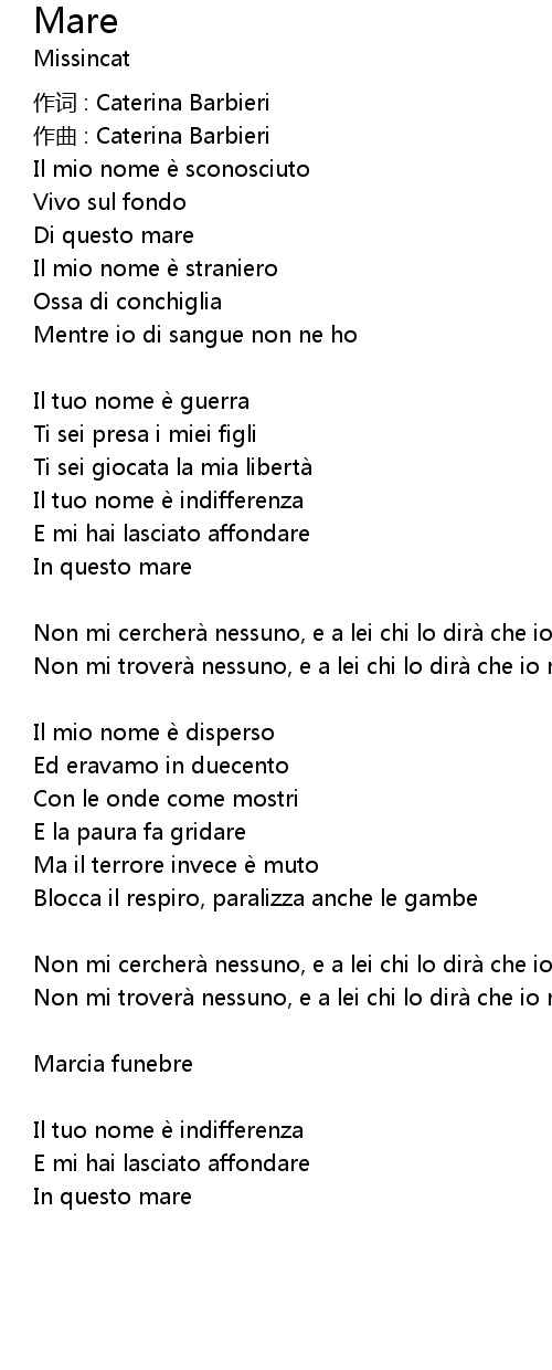 | Non mi cercherà nessuno, e a lei chi lo dirà che io non torno? | |