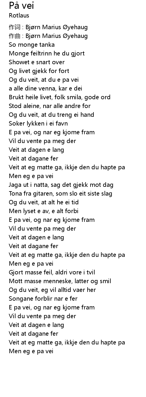 | Veit at eg matte ga, ikkje den du hapte pa | |