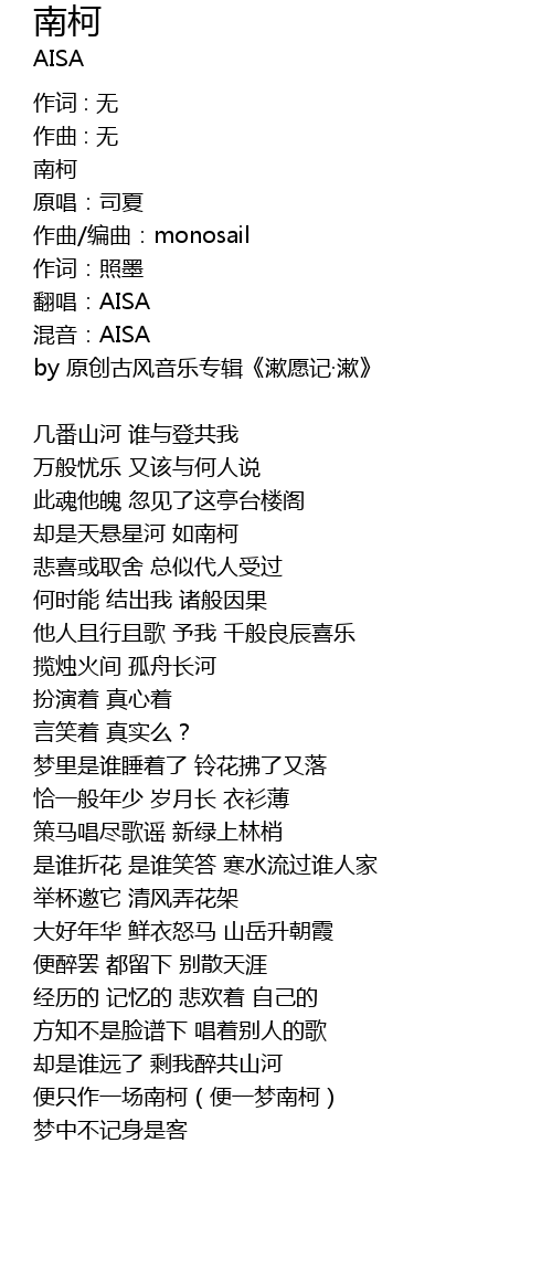 | biàn zhǐ zuò yī chǎng nán kē biàn yī mèng nán kē | |