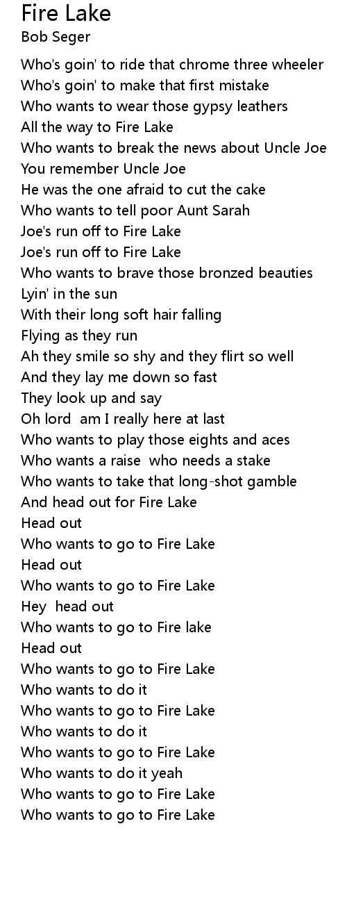 Who wants to go to Fire Lake |