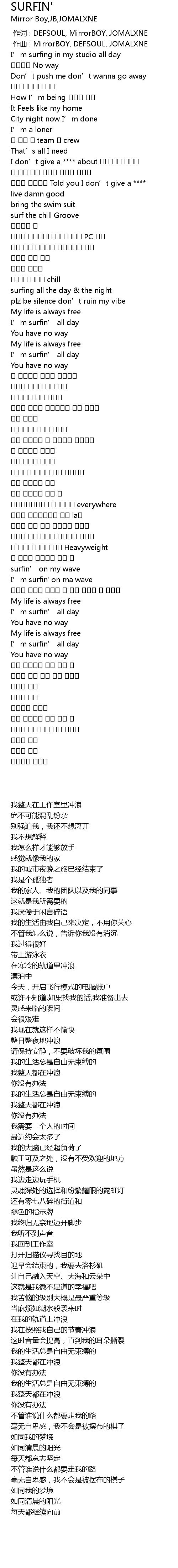 | [02:30.18] | 我整天都在冲浪 |