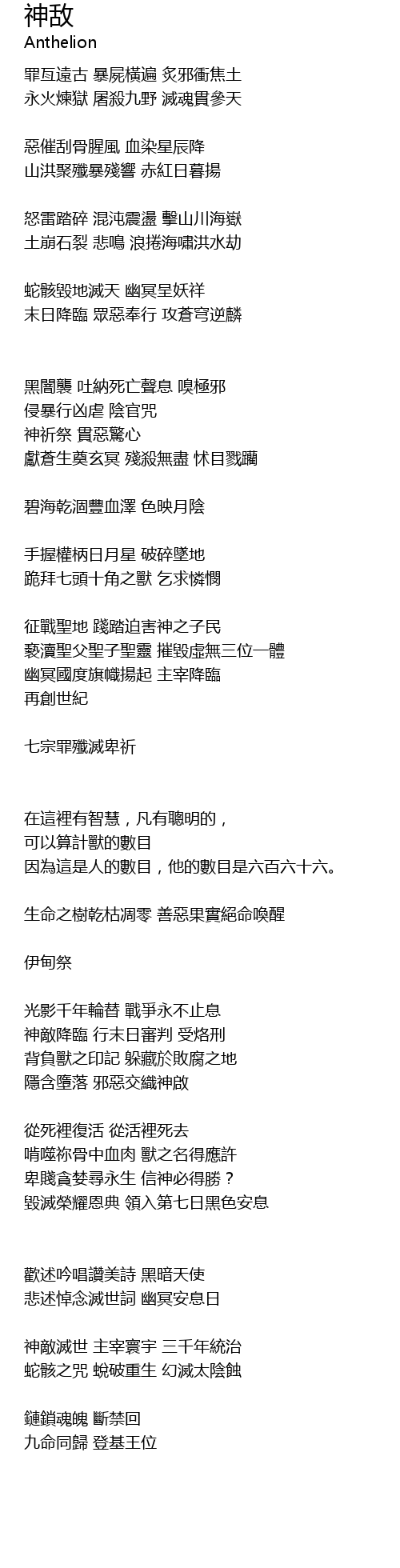 | 歌曲 | 神敌 |