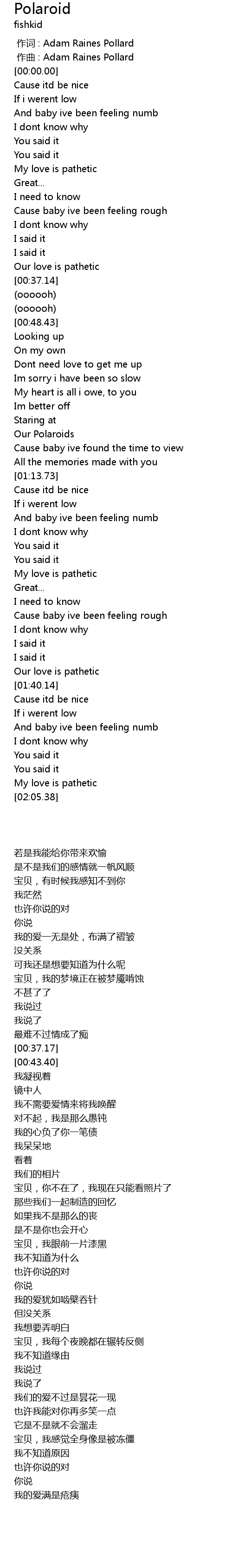 | [00:00.00] | zuò cí : Adam Raines Pollard |