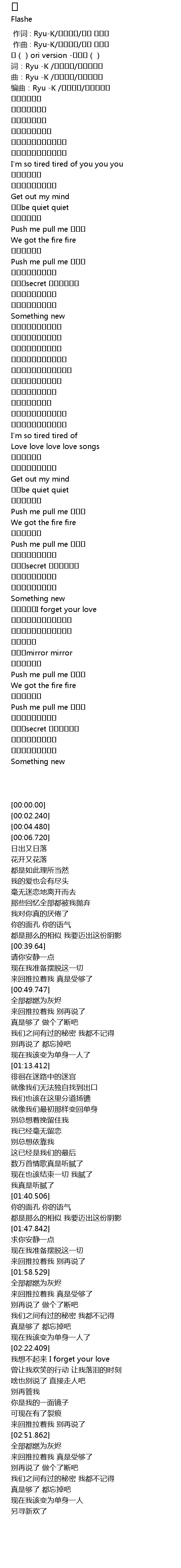 | [00:02.240] | 词:Ryu -K /태조양건/살찐고양이 |