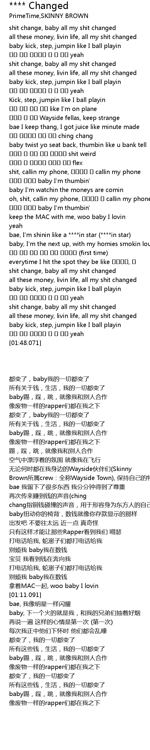 | [01:35.515] | shit change, baby all my shit changed |