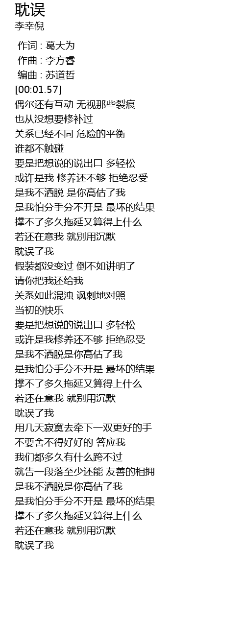 | [03:52.33] | 耽误了我 |