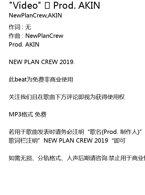 | ruo yong yu ge qu fa biao shi qing wu bi zhu ming" ge ming Prod. zhi zuo ren" ge ci lan zhu ming" NEW PLAN CREW 2019" ji ke | |