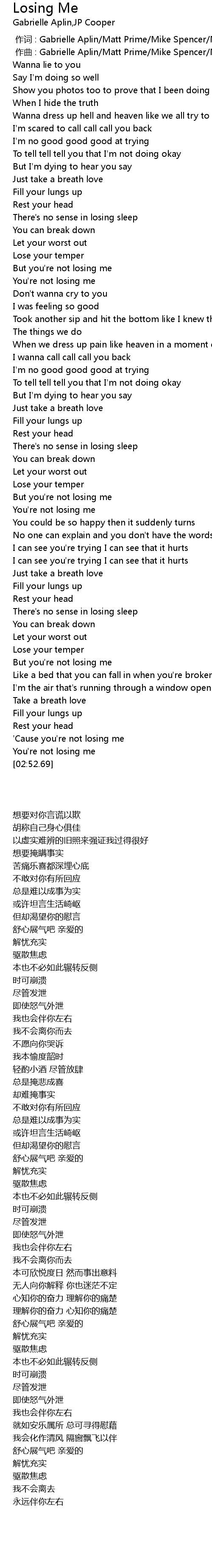 | [00:01.00] | zuo qu : Gabrielle Aplin Matt Prime Mike Spencer Nate Cyphert |