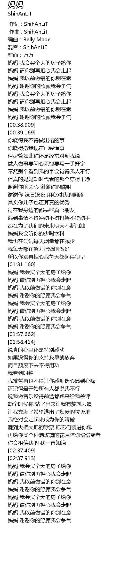 | [01:39.163] | 妈妈 我以前做错的你别在意 |