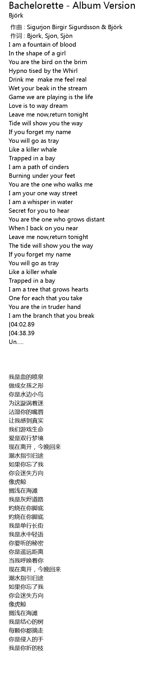 | [00:01.00] | 作词 : Bjork, Sjon, Sjòn |