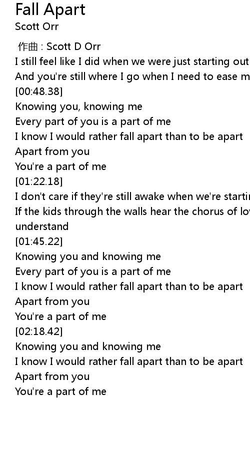 | [01:02.96] | I know I would rather fall apart than to be apart |