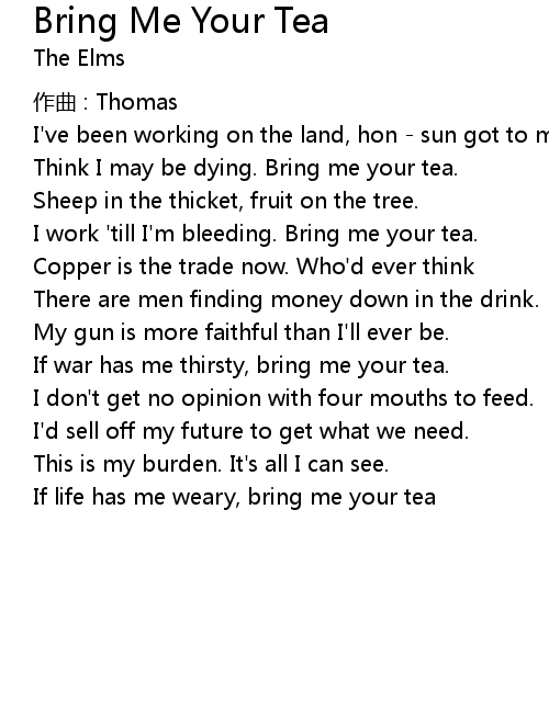 | 歌曲 | Bring Me Your Tea |