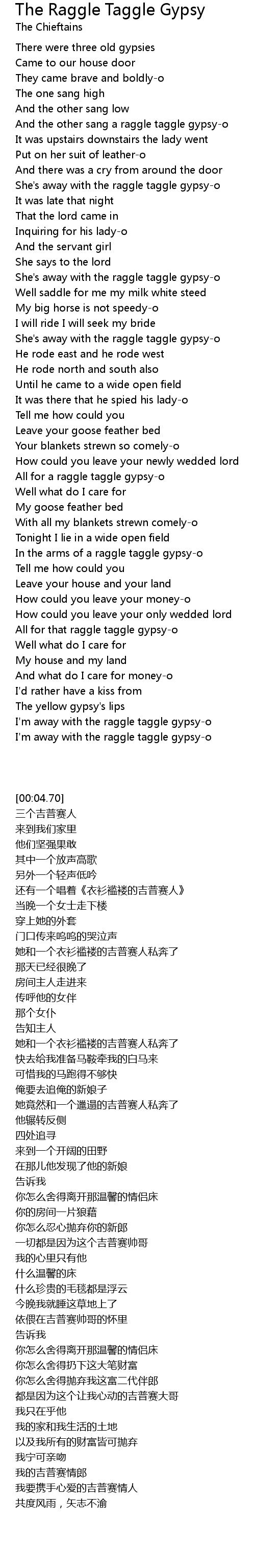 And the other sang a raggle taggle gypsy-o |