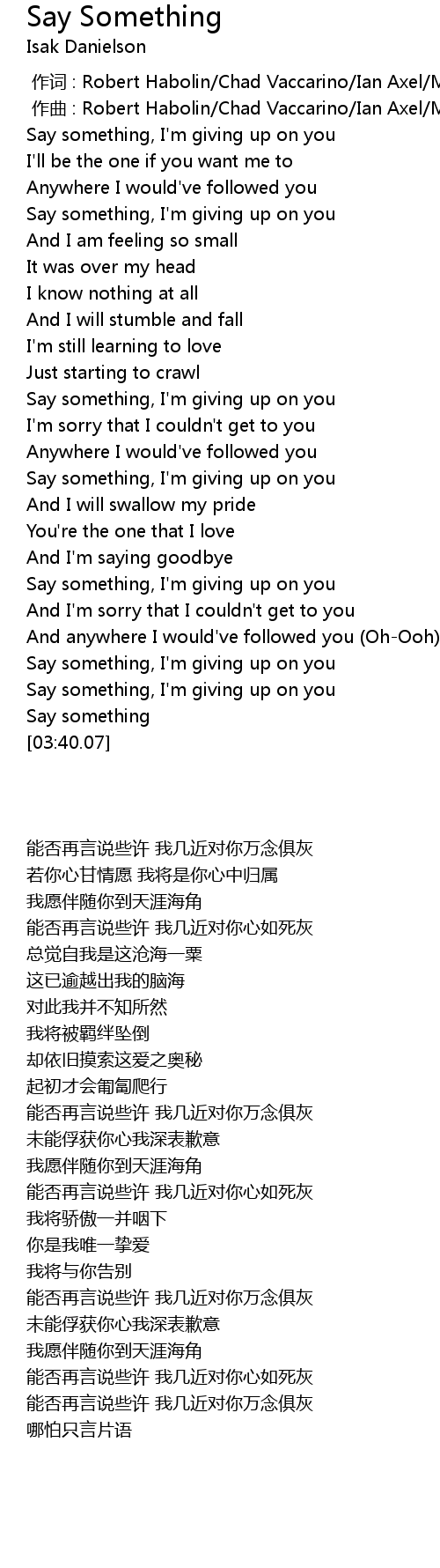| [03:23.49] | 能否再言说些许 我几近对你万念俱灰 |