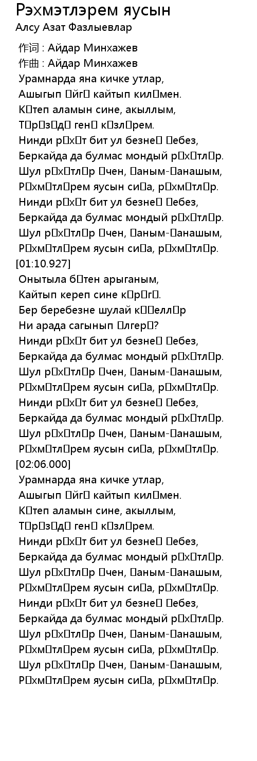 歌曲 Рэхмэтлэрем яусын