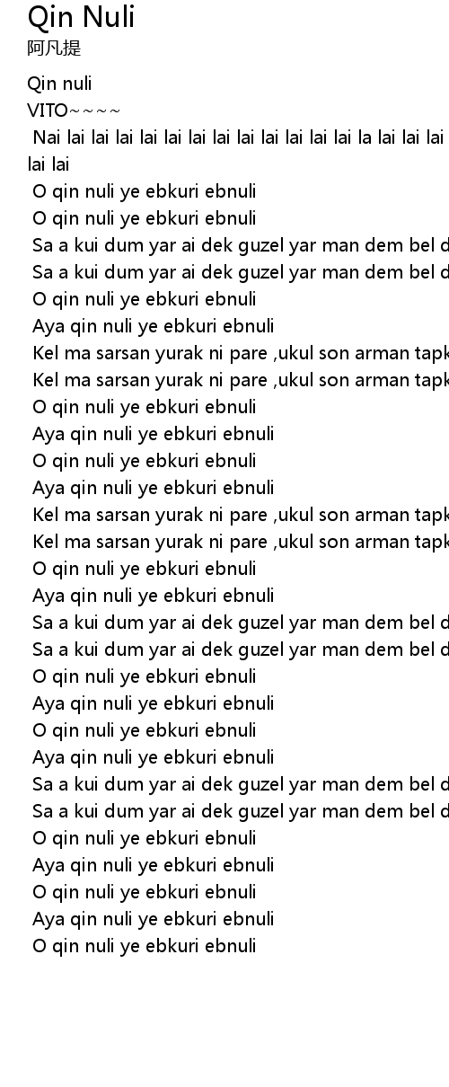 Qin Nuli 歌词