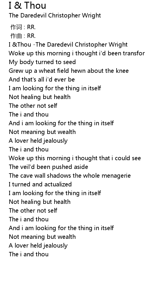 | [00:00.461] | I &Thou -The Daredevil Christopher Wright |