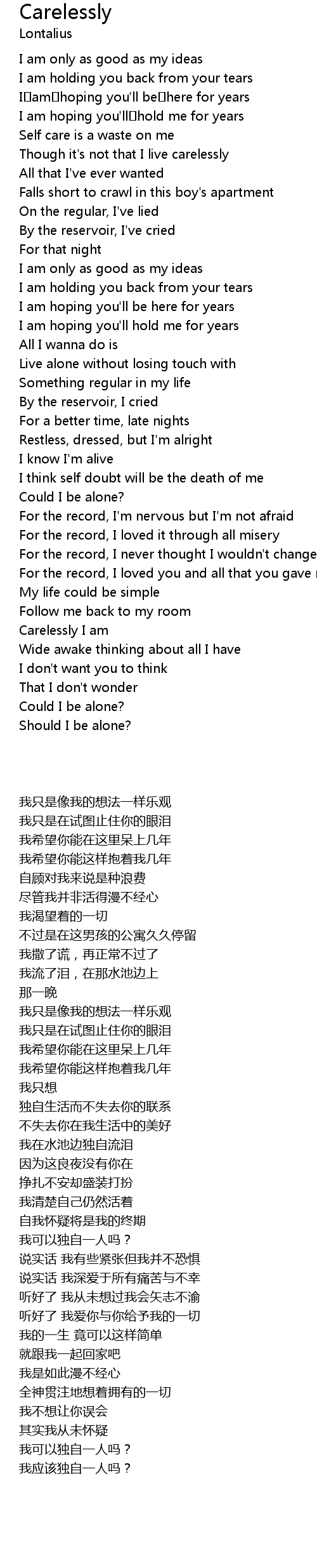| 歌曲 | Carelessly |