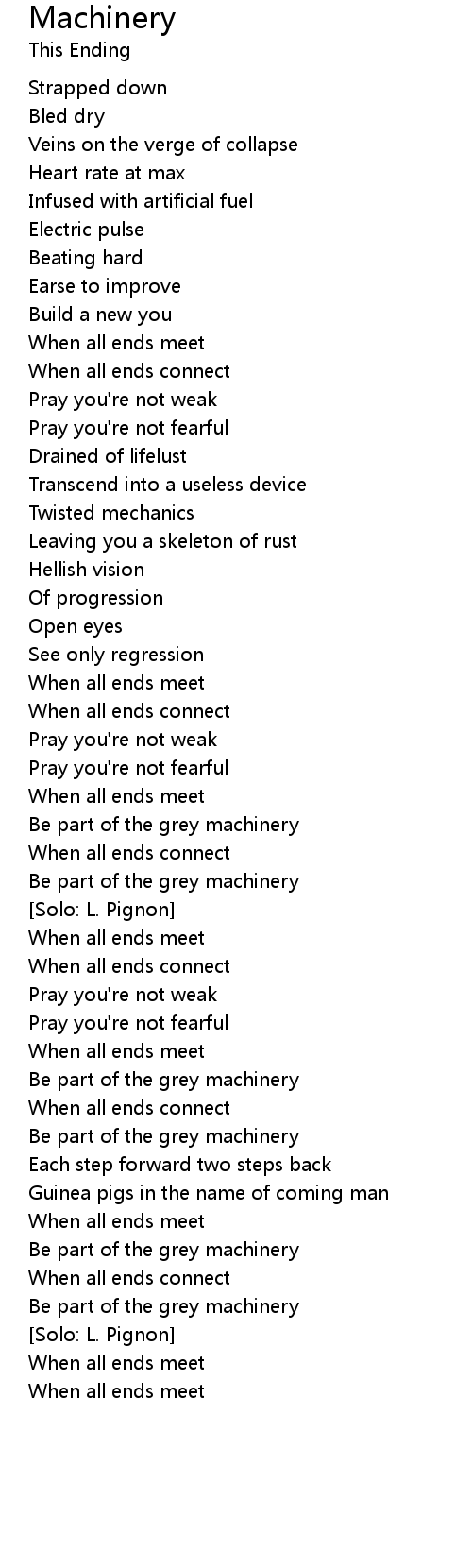 Machinery 歌词