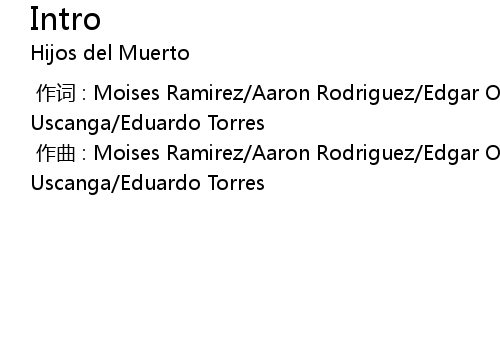 | [00:00.00-1] | zuò qǔ : Moises Ramirez Aaron Rodriguez Edgar Ortiz Jovani Uscanga Eduardo Torres |