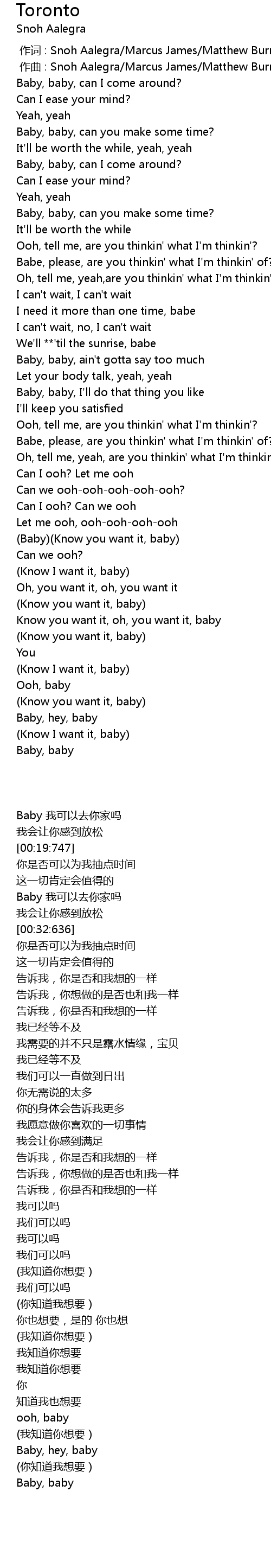 | [00:00.000] | zuò cí : Snoh Aalegra Marcus James Matthew Burnett Riley Bell |
