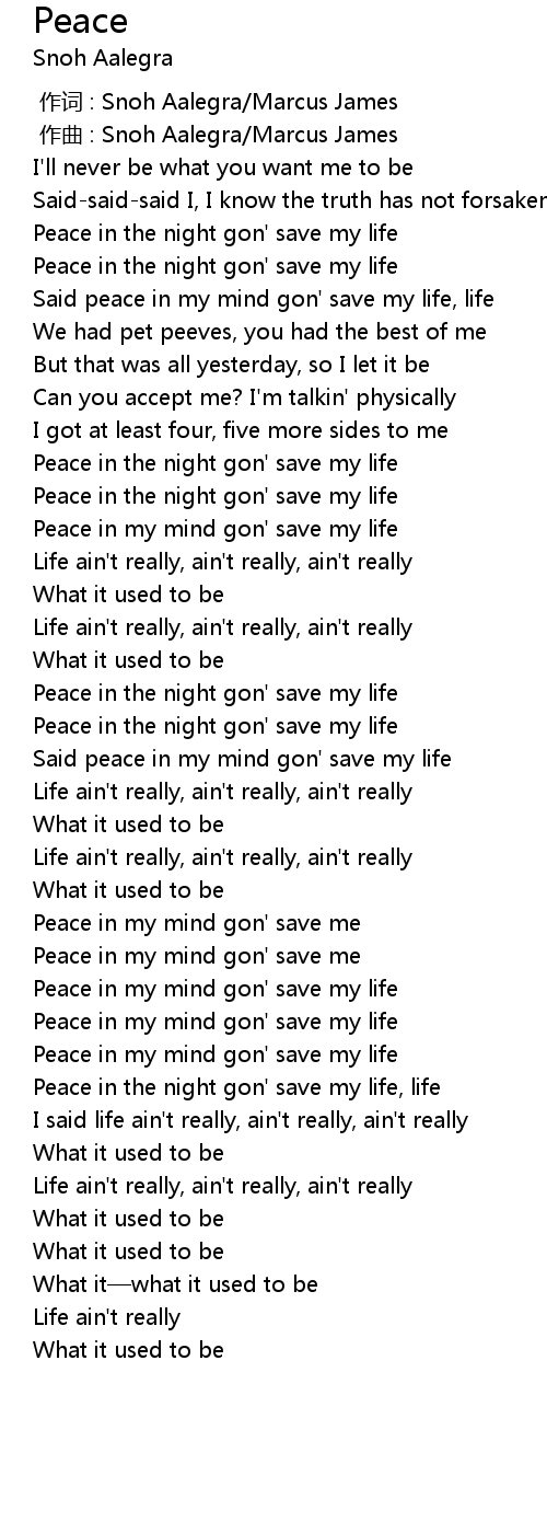 | [01:16.91] | Said peace in my mind gon' save my life |