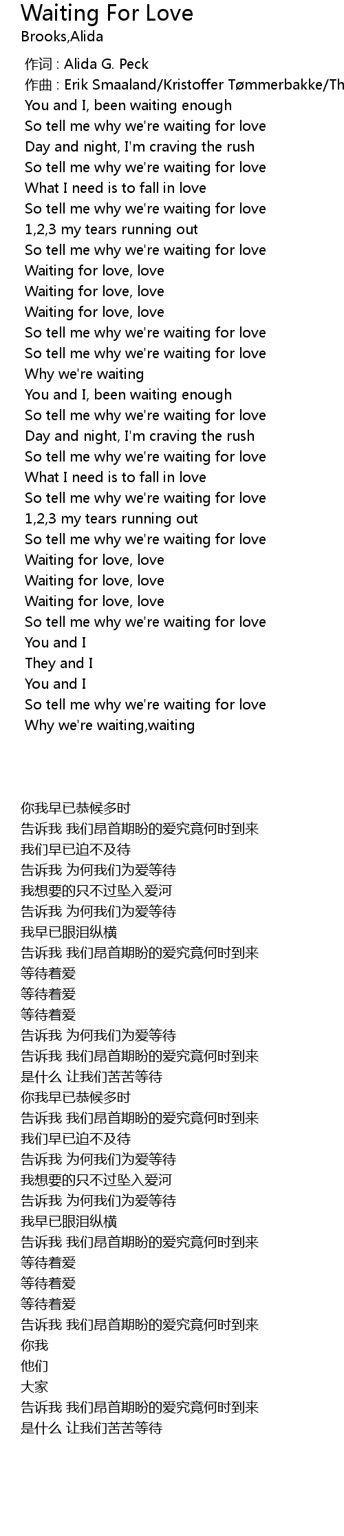| [00:15.010] | 告诉我 为何我们为爱等待 |