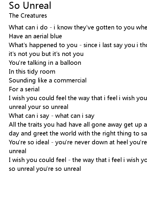 I wish you could feel the way that i feel i wish you could feel but your so unreal your so unreal |