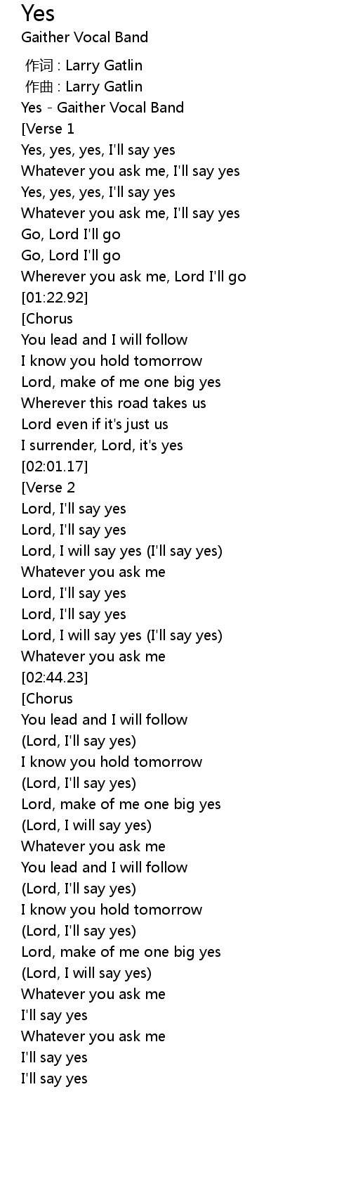 | [02:22.15] | Lord, I' ll say yes |