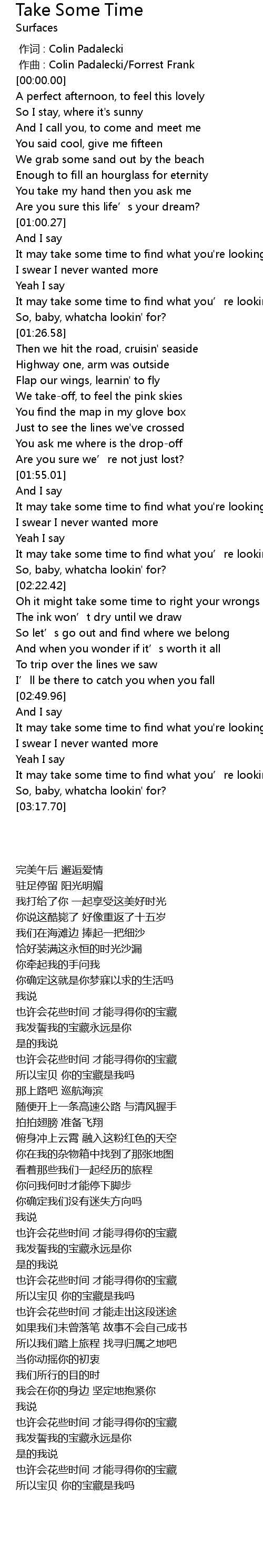 | [02:50.92] | 也许会花些时间 才能寻得你的宝藏 |