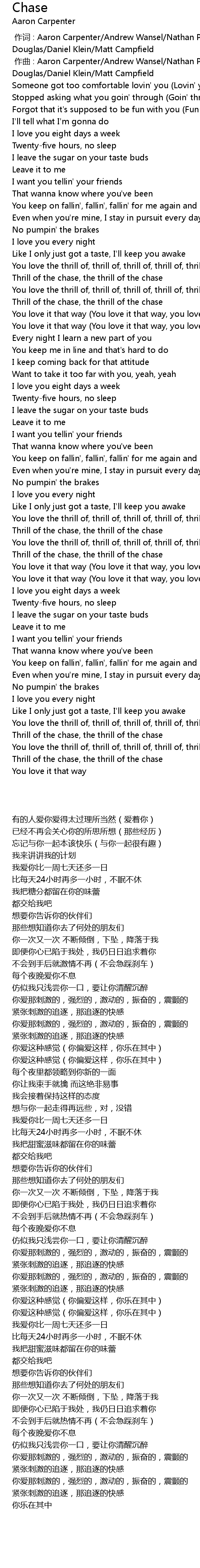 | [02:15.92] | Thrill of the chase, the thrill of the chase |