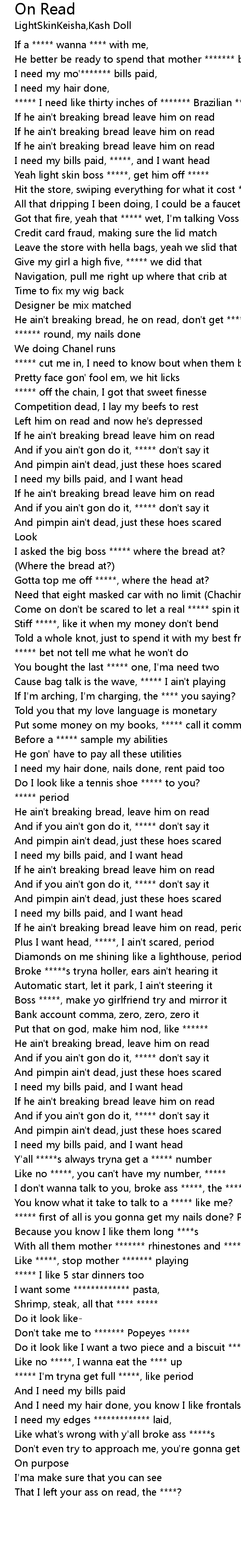 | [02:46.51] | If he ain't breaking bread leave him on read |