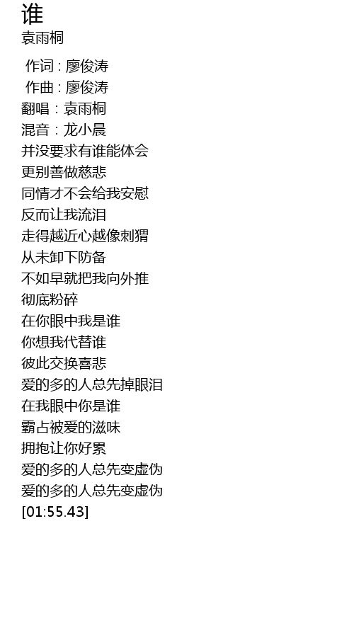 | [00:01.12] | 翻唱:袁雨桐 |
