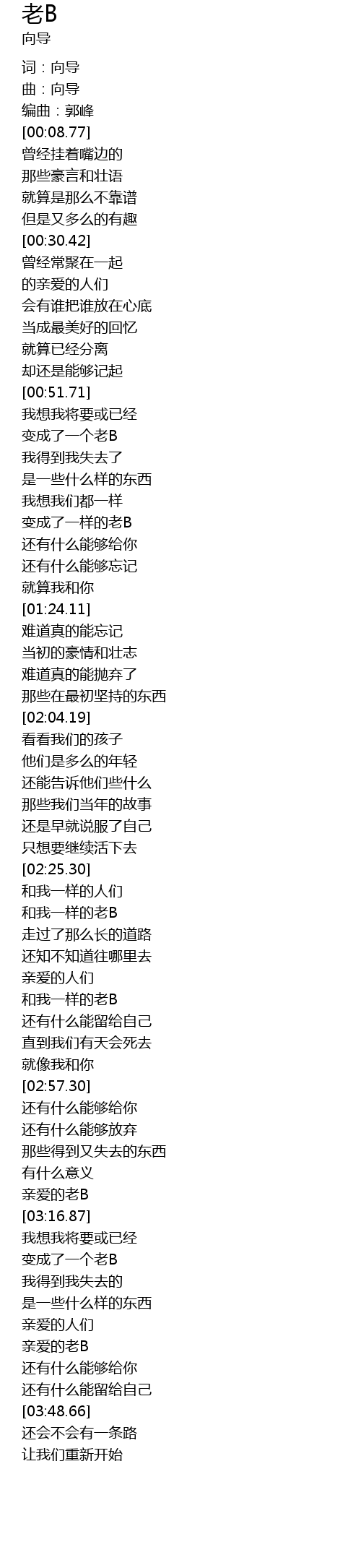 | [02:43.26] | hé wǒ yí yàng de lǎo B |