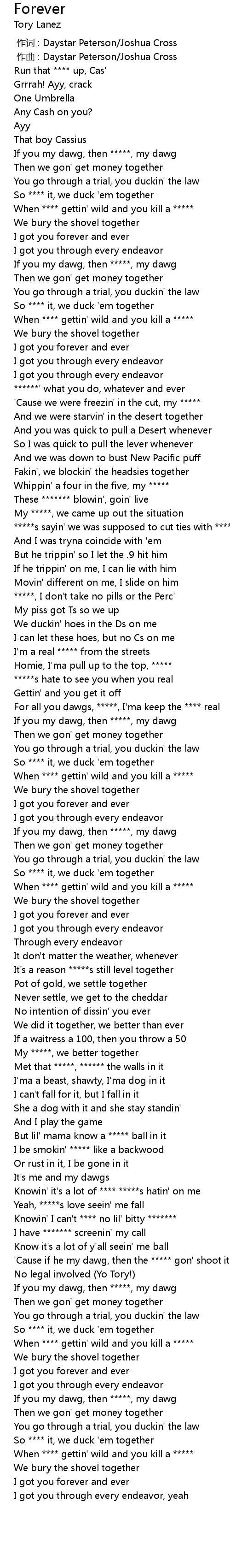 | [00:55.62] | *****s sayin' we was supposed to cut ties with *****s |