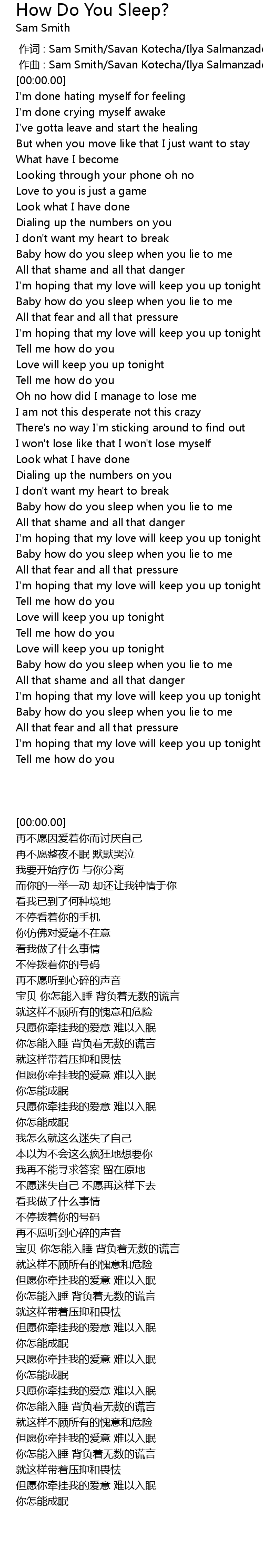 | [00:00.00] | zuò cí : Sam Smith Savan Kotecha Ilya Salmanzadeh Max Martin |
