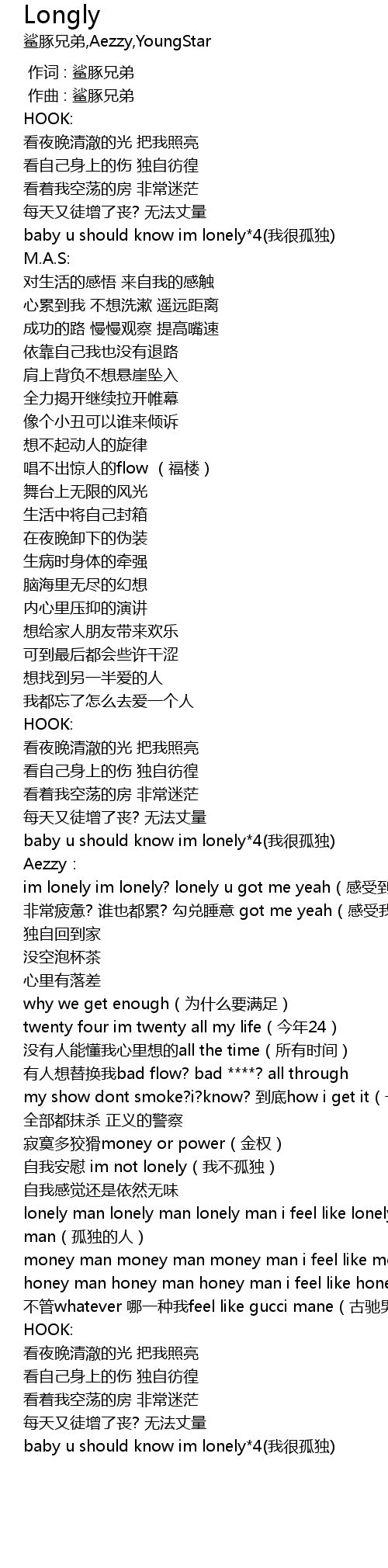 | [02:49.58] | lonely man lonely man lonely man i feel like lonely man(孤独的人) |