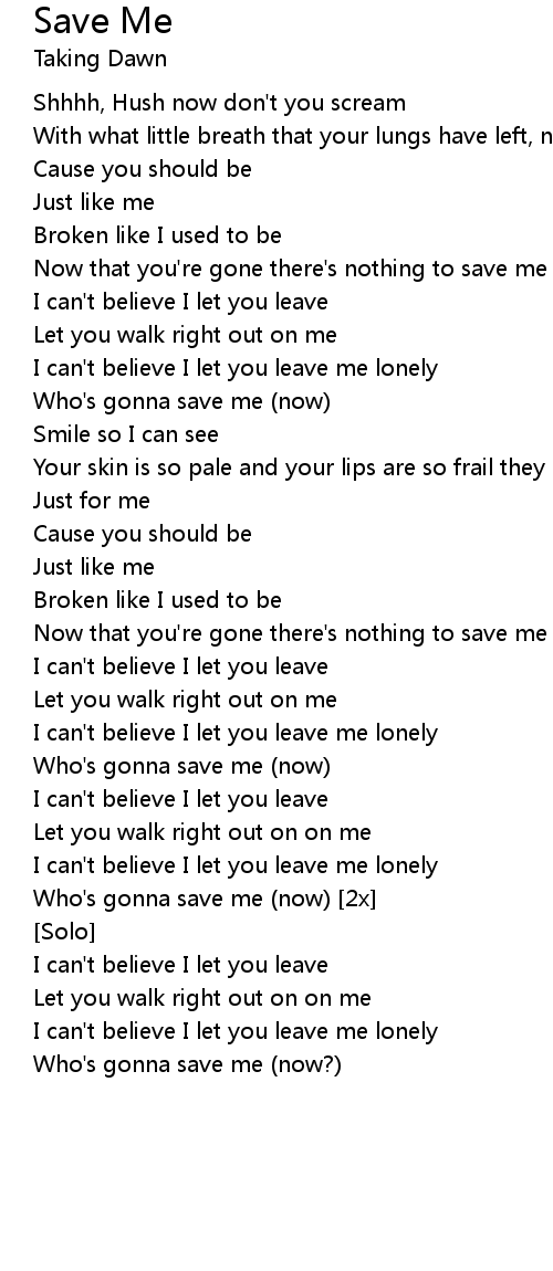 Who's gonna save me (now?) |