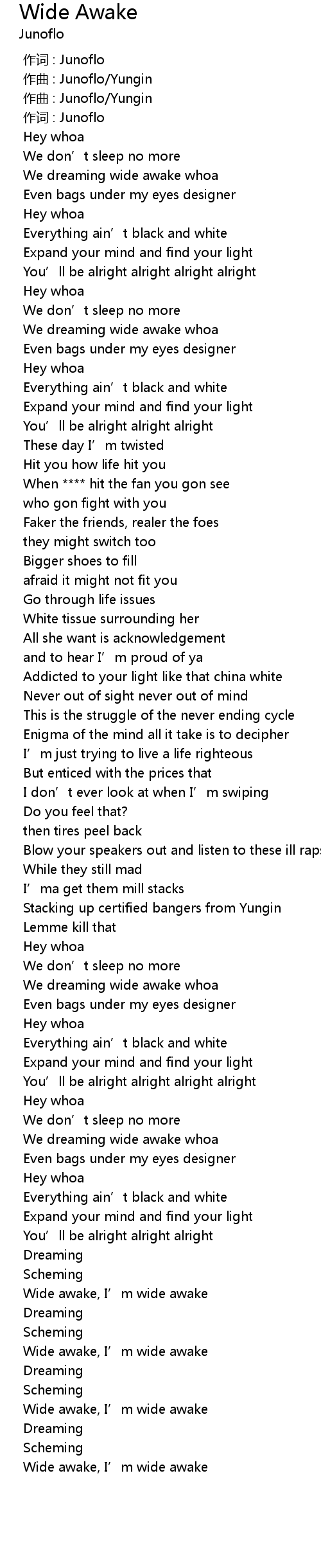 | [02:06.583] | We dreaming wide awake whoa |