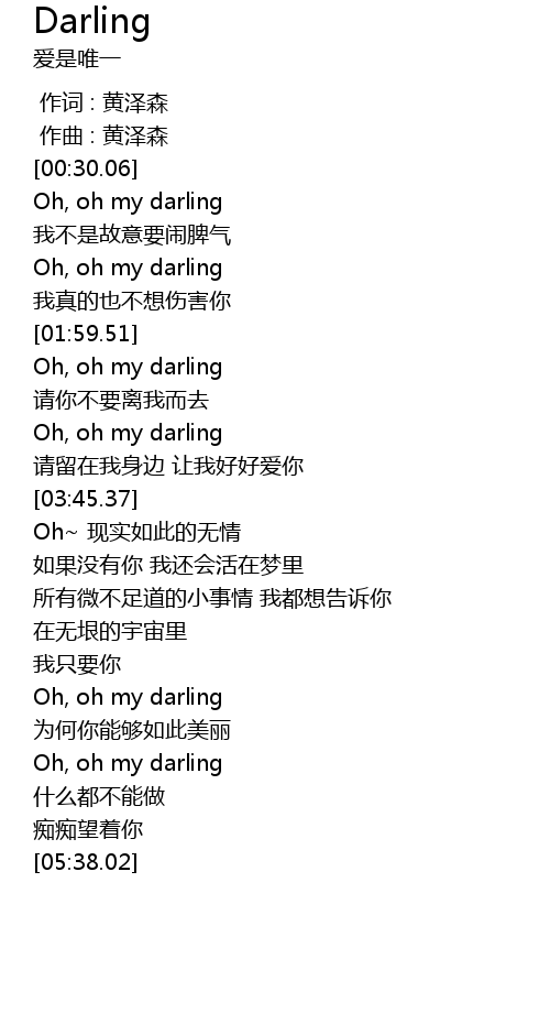 | [00:00.00] | 作词 : 黄泽森 |