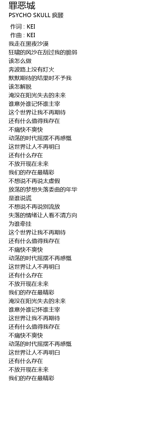 | 歌手 | PSYCHO SKULL 疯髅 |