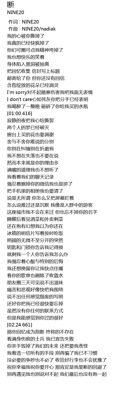 | [00:01.000] | zuo qu : NINE20 nadiak |