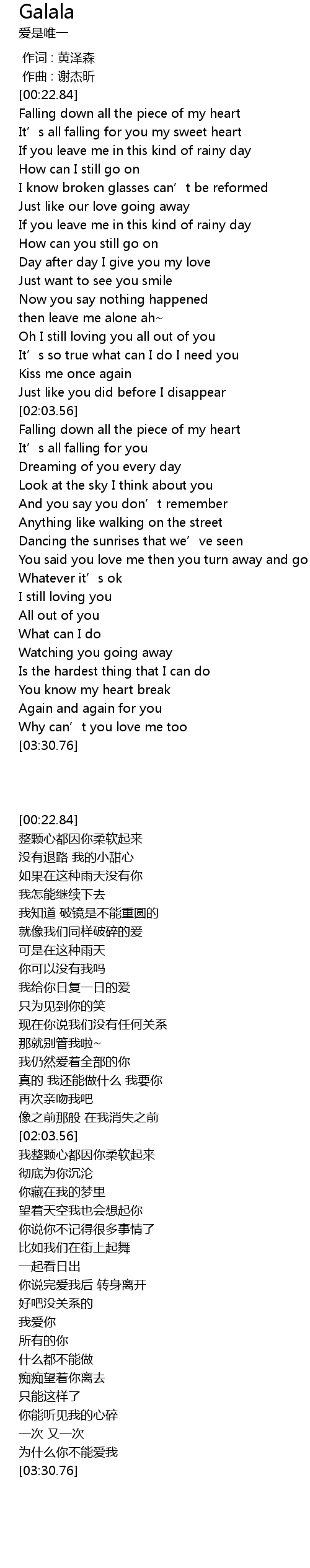 | [00:37.86] | It' s all falling for you my sweet heart |