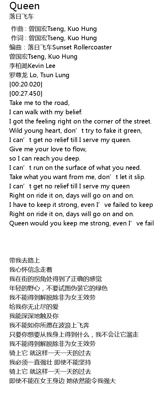| [02:47.120] | Queen would you keep me strong, even I’ve failed to keep you up. |