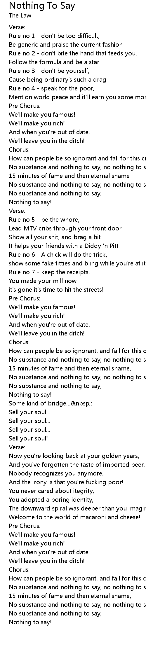 No substance and nothing to say, no nothing to say |