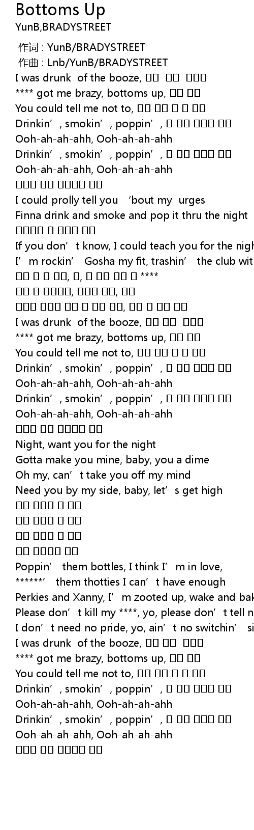 | [00:19.99] | **** got me brazy, bottoms up, 너를 위해 |