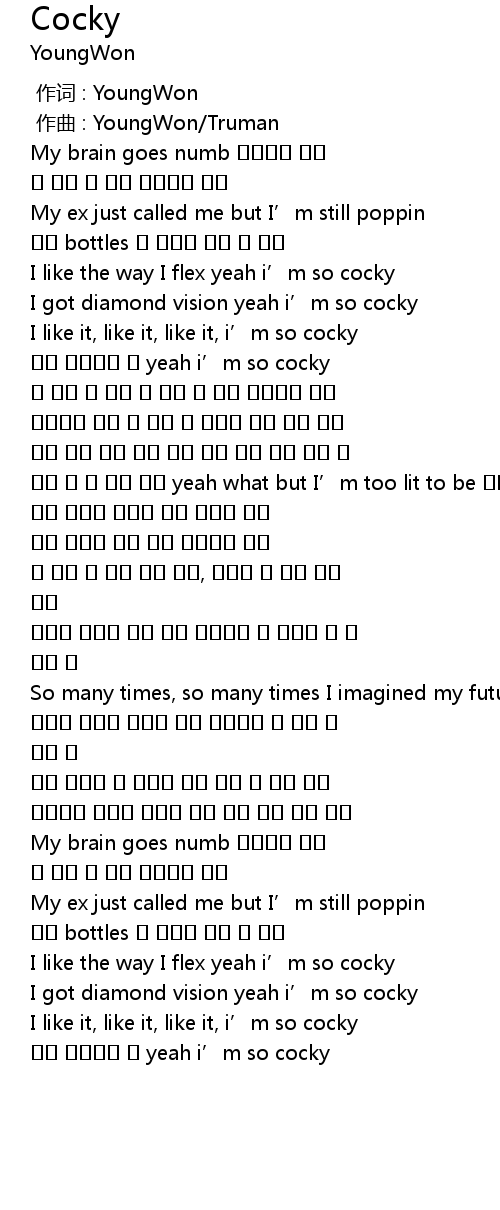 | [00:24.665] | I like the way I flex yeah i' m so cocky |