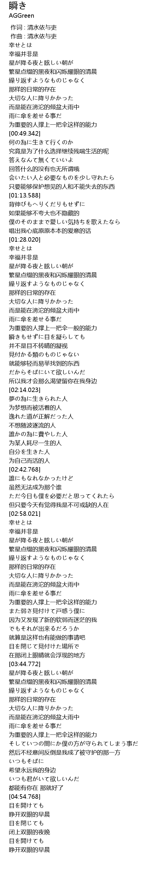 | [00:05.172] | 星が降る夜と眩しい朝が |