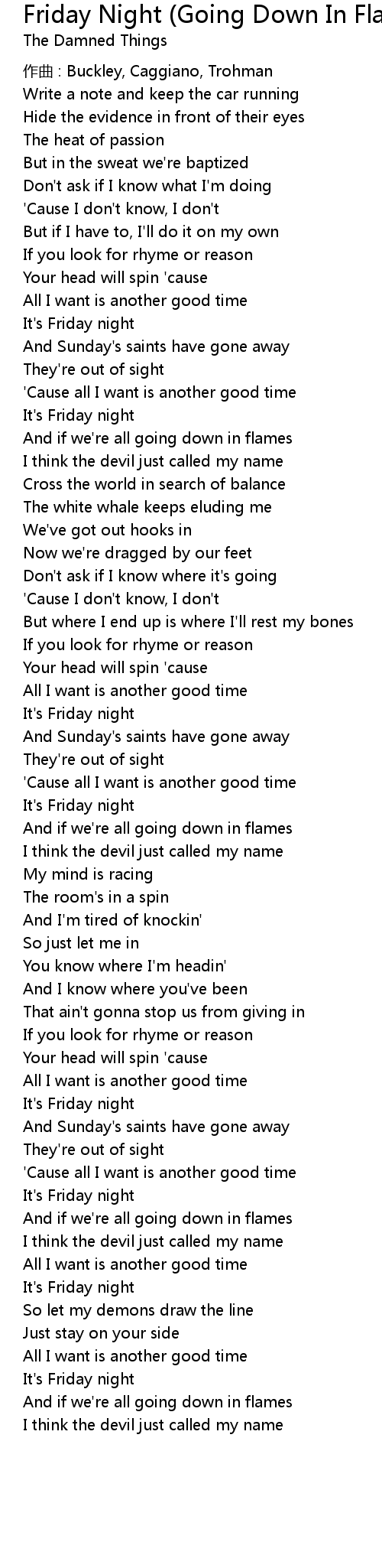 | 歌曲 | Friday Night (Going Down In Flames) |