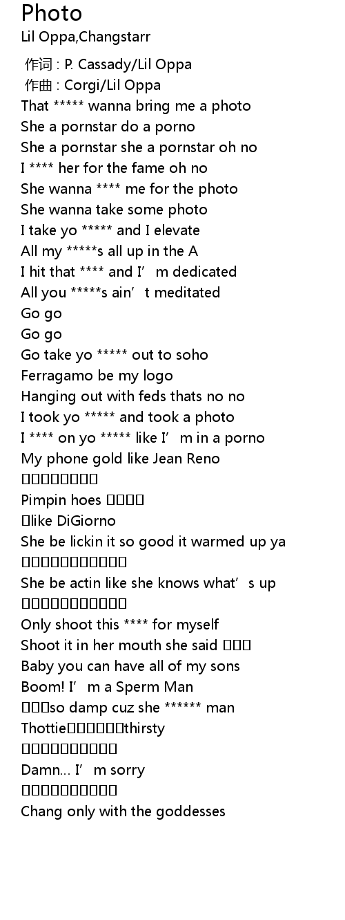 | [00:43.655] | I **** on yo ***** like I’m in a porno |